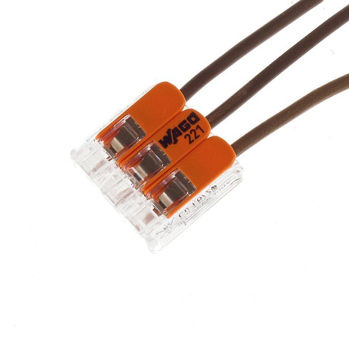 Szybkozłączka elektryczna WAGO 221-413 3x4 mm² jest przeznaczona do szybkiego, niezawodnego i bezśrubowego połączenia dwóch przewodów. Zapewnia niezawodny kontakt bez konieczności użycia narzędzi – wystarczy podnieść dźwignię, włożyć przewód i ponownie ją opuścić. Przezroczysty korpus umożliwia łatwą kontrolę wzrokową prawidłowego włożenia przewodu, a pomarańczowa dźwignia sterująca zapewnia wygodne otwieranie i zamykanie miejsca zaciskania. Szybkozłączka jest odpowiednia dla wszystkich typów przewodów miedzianych: