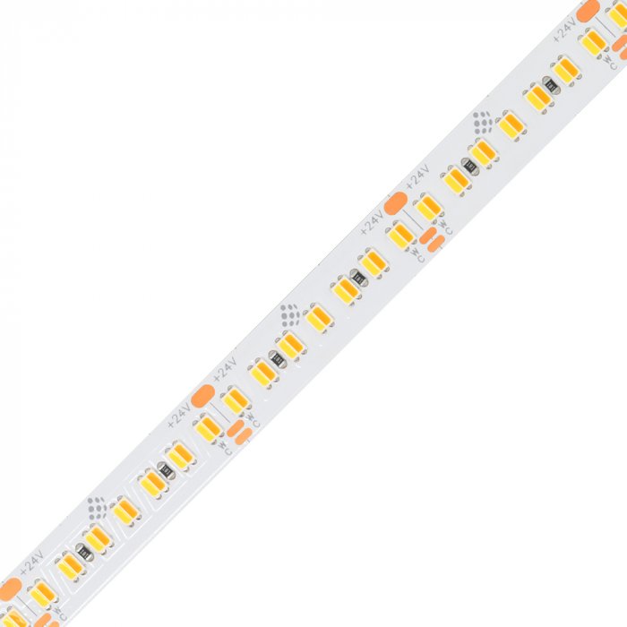 Taśma LED CCT 24V CCT24196 spełnia wymagania stopnia ochrony IP20, dzięki czemu nadaje się do produkcji opraw wewnętrznych. Wyposażona jest w markowe chipy Sanan w liczbie 196 diod LED /1m o współczynniku oddawania barw CRI90+ (Color Rendering Index). Wydajną pracę i wysokie natężenie światła zapewnia strumień świetlny o szerokim zakresie temperatur barwowych: