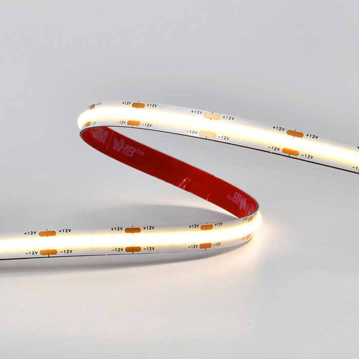 Wysokiej jakości mocno świecąca taśma COB 12V SC12480 wyposażona jest w ułatwiającą montaż samoprzylepną taśmę dwustronną najwyższej klasy 3M VHB. Ten rodzaj taśmy samoprzylepnej zapewnia doskonałą przyczepność do powierzchni i najlepsze odprowadzanie ciepła.