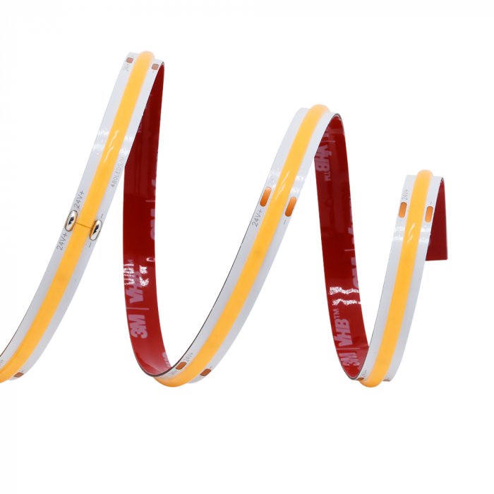 Wysokiej jakości mocno świecąca taśma COB 24V SC24480 wyposażona jest w ułatwiającą montaż samoprzylepną taśmę dwustronną najwyższej klasy 3M VHB. Ten rodzaj taśmy samoprzylepnej zapewnia doskonałą przyczepność do powierzchni i najlepsze odprowadzanie ciepła.