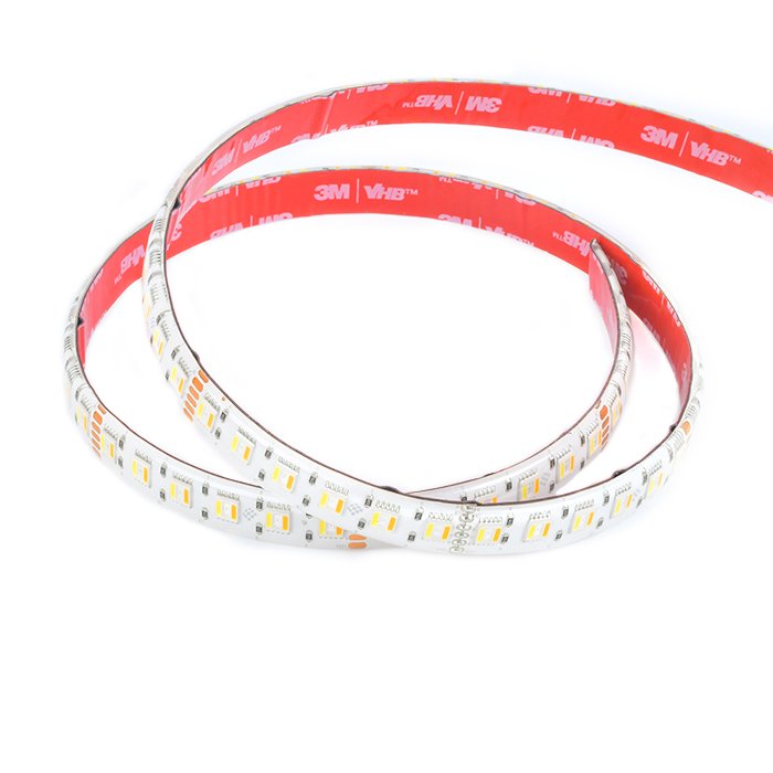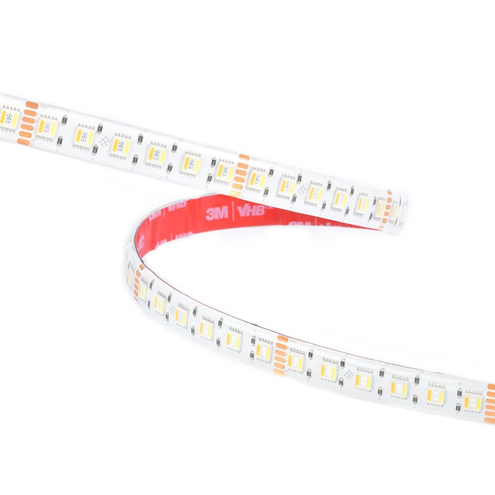 Wysokiej jakości mocno świecąca taśma LED RGBWW IP65 24V RGBWW2496 wyposażona jest w ułatwiającą montaż samoprzylepną taśmę dwustronną najwyższej klasy 3M VHB. Ten rodzaj taśmy samoprzylepnej zapewnia doskonałą przyczepność do powierzchni i najlepsze odprowadzanie ciepła.