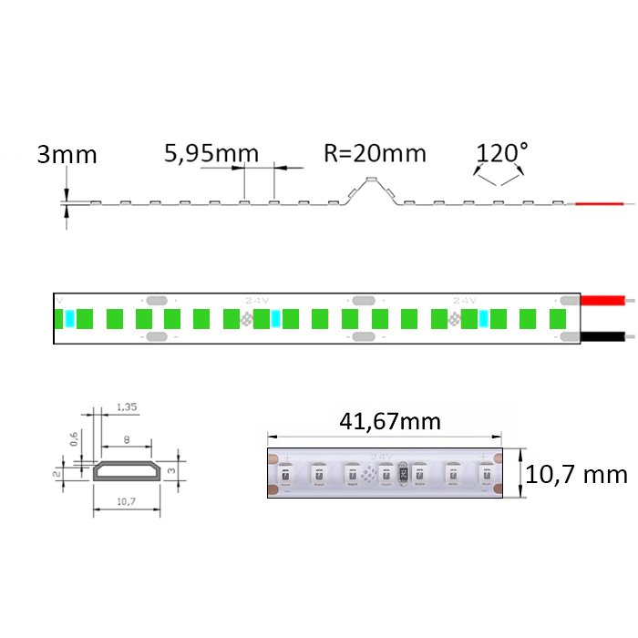 Taśma LED zielona 24V Lux Miners | IP65 | 10W | 168LED