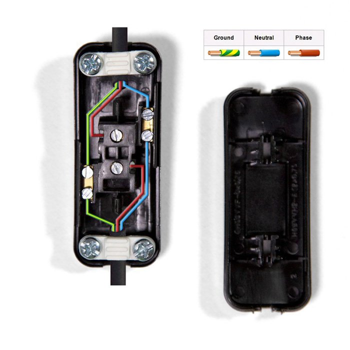 - Zastosowanie: do podłączenia oświetlenia klasy II z H03VVH2-F, kable 2x0,75 mm² i H03VV-F2, 3x0,75 mm²