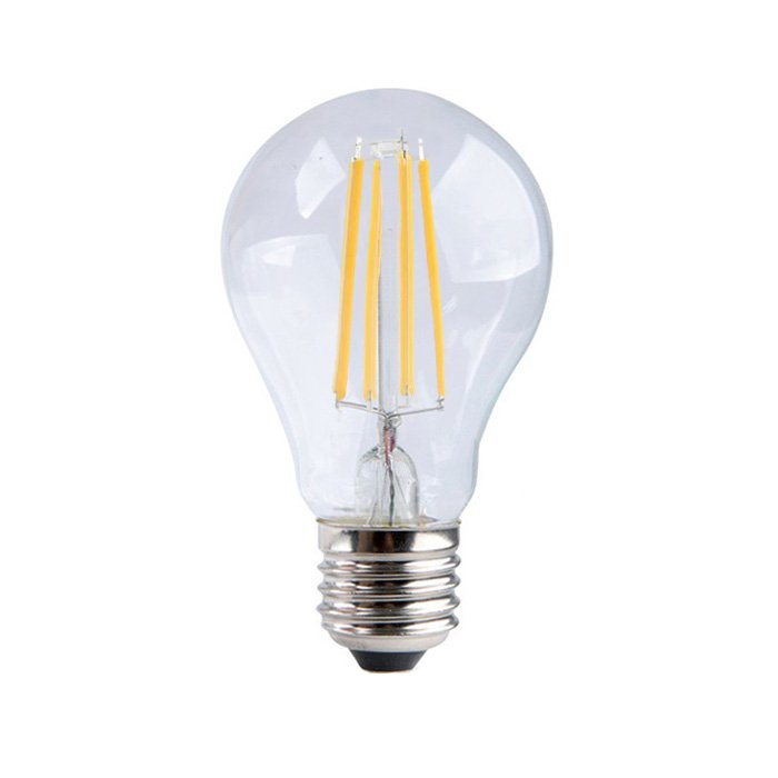 Żarówka filament E27 o mocy 8 W to wysokiej jakości technicznej energooszczędne źródło światła. Ze względu na popularny kształt przezroczystej szklanej bańki A60 (Drop - w najszerszym miejscu Ø 60 mm), stanowi ona świetną alternatywę dla wszystkich tradycyjnych opraw oświetleniowych mających oprawki E27. Po zapaleniu żarówki filament widoczne stają się również zalety przezroczystej barwy szkła. Emitowane światło przenika do pomieszczenia z pełną mocą bez jakiegokolwiek rozpraszania światła. Żarówka LED filament A60 z linearnym układem żarników 6xCOBL ma następujące właściwości oświetleniowe: