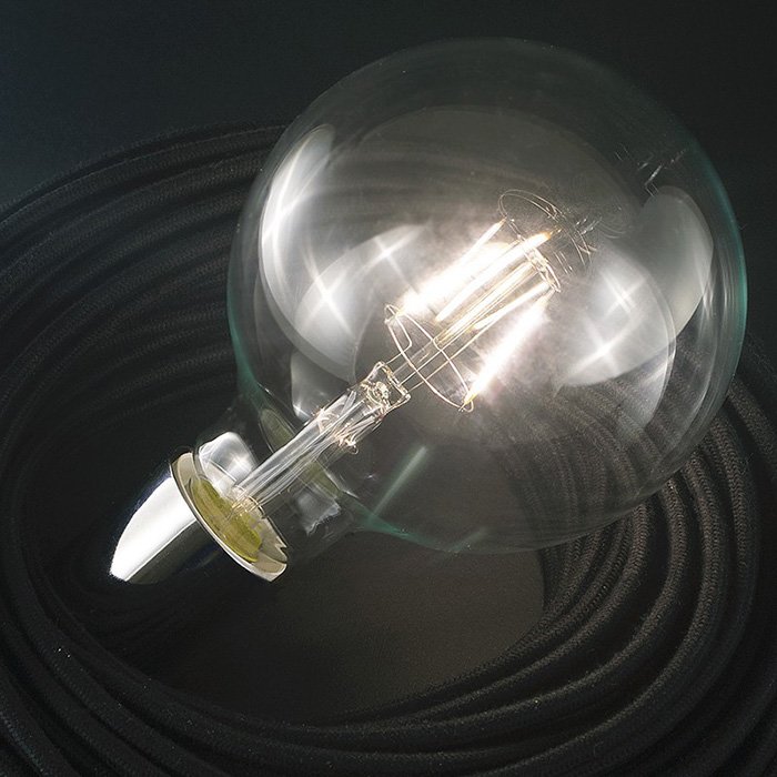 Żarówka filament E27 o mocy 4,5 W to wysokiej jakości technicznej energooszczędne źródło światła. Ze względu na popularny kształt przezroczystej szklanej bańki G125 (Globe - w najszerszym miejscu Ø 125 mm), stanowi ona świetną alternatywę dla wszystkich wiszących opraw oświetleniowych mających oprawki E27. Po zapaleniu żarówki filament widoczne stają się również zalety przezroczystej barwy szkła. Emitowane światło przenika do pomieszczenia z pełną mocą bez jakiegokolwiek rozpraszania światła. Żarówka LED filament G125 z linearnym układem żarników 3xCOBL ma następujące właściwości oświetleniowe: