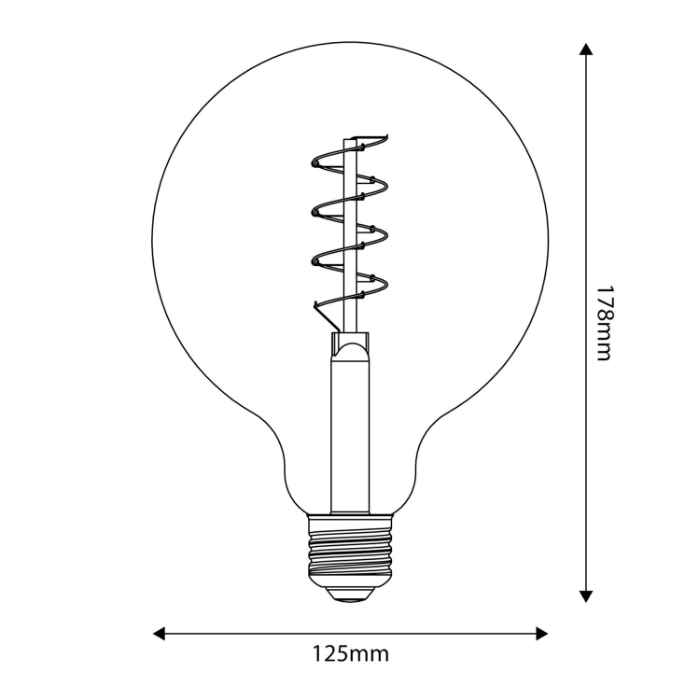 Żarówka C07 o kształcie kuli (globe) i średnicy 125 mm to wydajna stylowa żarówka, której można używać pojedynczo lub w różnych połączeniach. Jej opatentowany żarnik nowej generacji - najcieńszy na rynku - ma charakterystyczny spiralny kształt, podobny do tego z tradycyjnych żarówek.