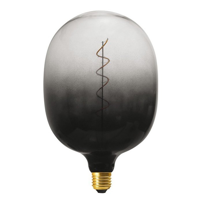 Ściemnialna duża żarówka dekoracyjna E27 o mocy 4 W przynosi dosłowną rewolucję w estetycznym wyglądzie żarówek. Unikatowy design dużej żarówki o nazwie produktu Egg Shadow (w najszerszym miejscu Ø 170 mm) łączy w sobie doskonałe właściwości estetyczne i poezję spiralnego żarnika. Dzięki swojemu dominującemu wymiarowi, czarna żarówka E27 Egg Shadow umożliwia tworzenie lamp wiszących i lamp na oprawki E27. Prawdziwym arcydziełem jest także stonowane dwukolorowe szkło żarówki w połączeniu kolorystycznym dymiony + przezroczysty. Po zapaleniu dużej żarówki dekoracyjnej Egg Shadow masz możliwość obserwować doskonałe połączenie cieni i nastrojowego światła o następującej charakterystyce: