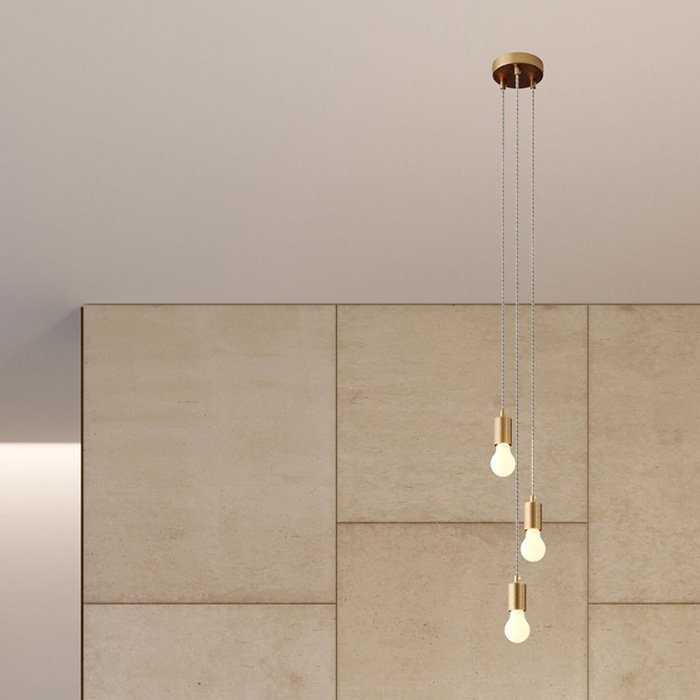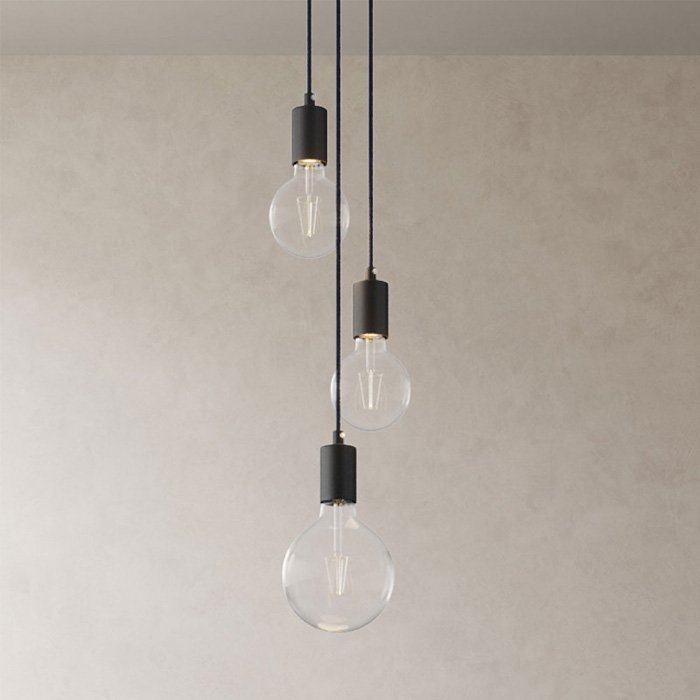 Wiszące żarówki 3x E27 Metal to jedna z fascynujących lamp sufitowych. Wyróżnia się wyjątkowo wysoką jakością wykonania i materiałami, które przeszły staranną selekcję. Naszym celem było stworzenie doskonałej lampy z wiszącymi żarówkami, która dzięki swojemu wyglądowi i wariantom kolorystycznym spodoba się wszystkim kreatywnym duszom. Detale lampy dopełniają takie komponenty jak: 3x metalowa oprawka żarówki, 1x metalowa podsufitka oraz 3x kabel w oplocie tekstylnym 120 / 100 / 80 cm. Kabel lampy można łatwo skrócić do żądanej długości podczas montażu oprawy. Metalowe komponenty o wyjątkowej jakości technicznej i stylu są produkowane we Włoszech.