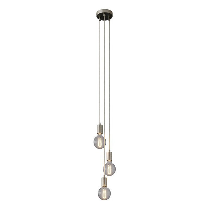 - tytan szczotkowany | ⚫ podsufitka do lamp metalowa Ø120 mm - z trzema otworami i walcowatą blokadą kabla [KRM573FTISTERM], ⚫ kabel materiałowy "Cipria o wysokim połysku" RM27 - jedwabny | długość 80/100/120 cm: [XZ2RM27], ⚫ 3x oprawka żarówki metalowa E27 tytan szczotkowany z walcowatą blokadą kabla [KBM4011TISTERM]