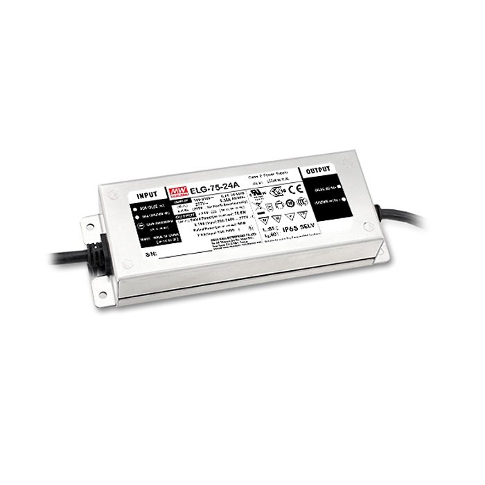 Zasilacz LED DALI 24V IP67 Mean Well ELG-75-24DA-3Y to wysokiej jakości nowoczesny zasilacz impulsowy, który został wyposażony w nowoczesne technologie i elektronikę. Jego projekt techniczny i produktowy został opracowany z myślą o zasilaniu i ściemnianiu PWM taśm LED. Nadaje się do zastosowania jako zasilanie prądem stałym urządzeń elektronicznych niskiego napięcia. Dzięki szerokiemu zakresowi napięcia wejściowego (100-305 VAC) można go wykorzystać w większości sieci zasilających na całym świecie. Zasilacz ELG-75-24DA-3Y oferuje następujące wartości wyjściowe: