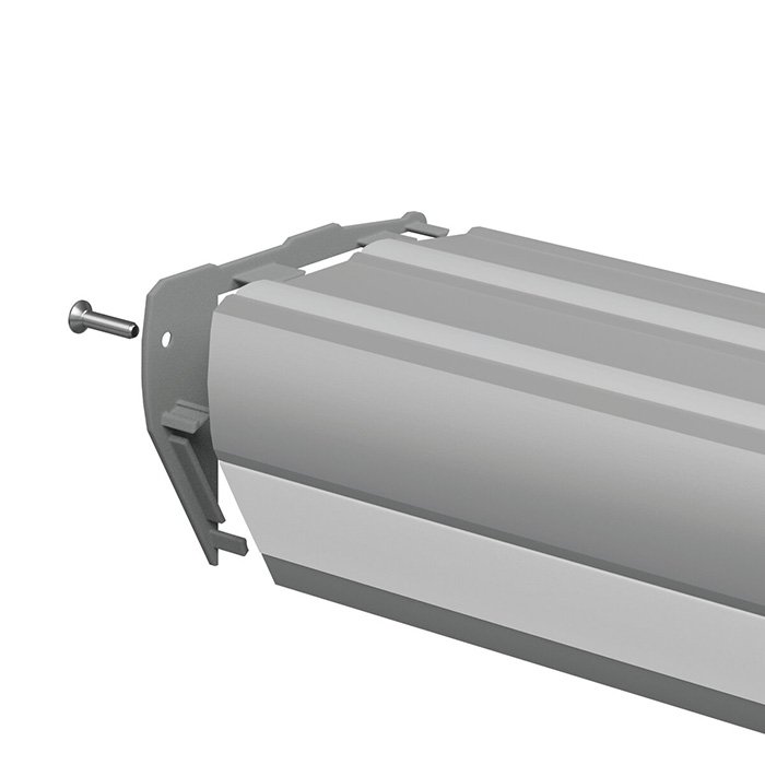 - Montaż końcówki poprzez wciśnięcie do profilu LED i dokręcenie śruby montażowej.