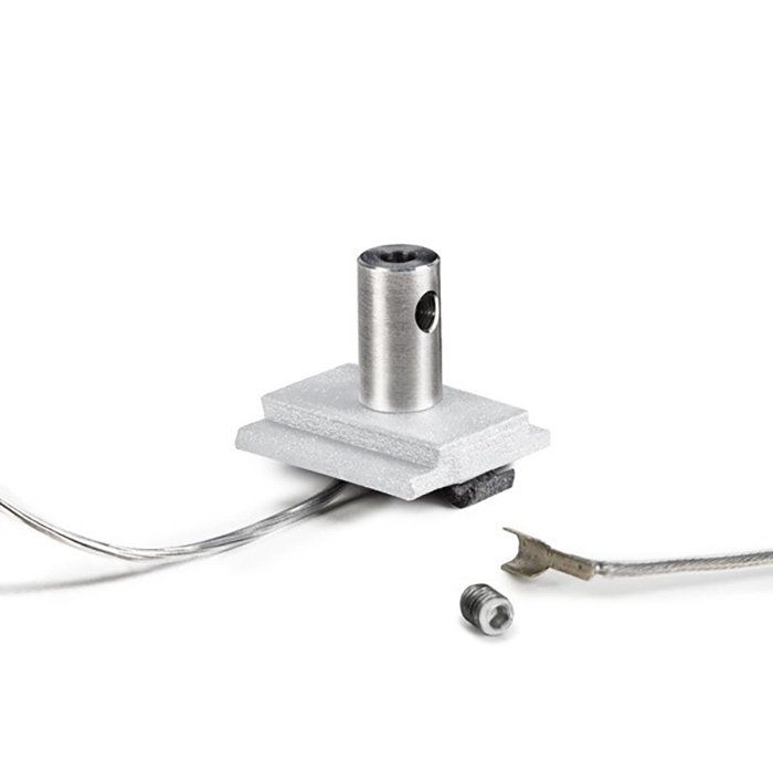 - połączenie przewodu zasilającego umożliwia poprowadzenie napięcia przez głowicę, stalową linkę aż do oprawy do taśmy LED.