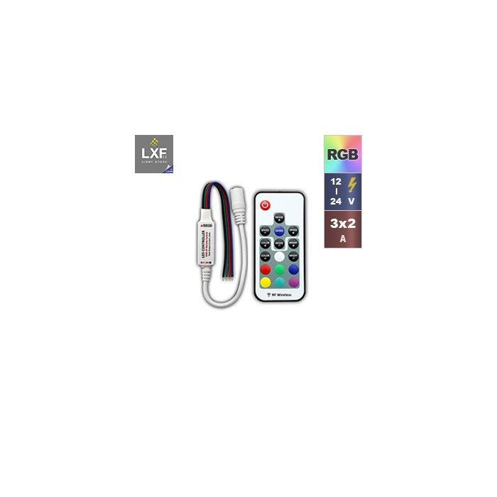 Podstawowy zestaw pilot LED RGB i radiowy odbiornik RGB 17B to odpowiedni zestaw sterujący do kolorowych taśm RGB LED. Moc odbiornika wynosi 3x2A, można do niego podłączyć taśmy LED RGB o łącznej mocy 72W przy napięciu 12V i 144W przy 24V. Zdalne sterowanie taśmami RGB LED to popularny sposób regulacji intensywności oświetlenia. Za pomocą sterownika RGB LED można wyłączać, włączać i ściemniać taśmy LED RGB. Regulacja jasności RGB LED do taśm za pomocą pilota odbywa się poprzez dłuższe naciśnięcie odpowiedniego przycisku na pilocie. Dzięki transmisji sygnału radiowego zasięg pilotów wynosi do 20m, bez konieczności bezpośredniej widzialności. Dlatego odbiornik może być ukryty np. w sufitach gipsowo-kartonowych, ścianach, szafach itp.