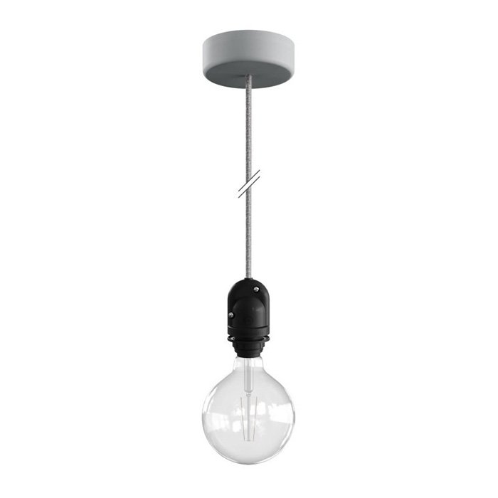 - Kabel tekstylny IP65 2x 1 mm o długości ≈ 1,5 m – o okrągłym wykonaniu i kolorze, który idealnie pasuje do pozostałych elementów. Długość można łatwo skrócić w zależności od potrzeb przestrzeni.