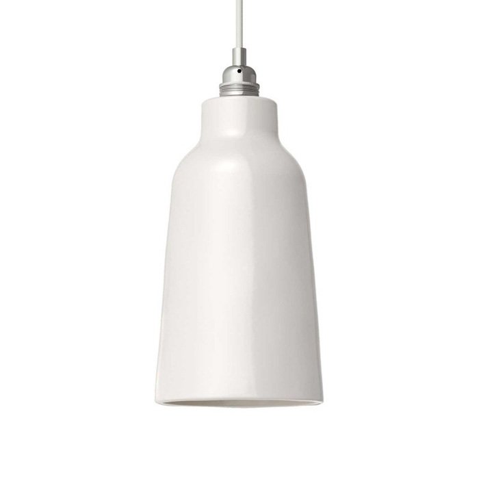- biały błyszczący | ⚫ podsufitka do lamp metalowa Ø120 mm z walcowatą blokadą kabla [KRM57FCCRTERM], ⚫ kabel tekstylny biały RC01 - bawełniany | długość 120 cm: [XZ3RC01], ⚫ klosz ceramiczny Materia Bottiglia Ø15cm : [EKBOBIAN], ⚫ srebrna oprawka żarówki retro E27 - z kołnierzem i walcowatą blokadą kabla: [PL27MARTFTERM]