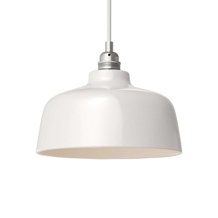 - biały błyszczący | ⚫ podsufitka do lamp metalowa Ø120 mm z walcowatą blokadą kabla [KRM57FCCRTERM], ⚫ kabel tekstylny biały RC01 - bawełniany | długość 120 cm: [XZ3RC01], ⚫ klosz ceramiczny Materia Coppa Ø24cm: [EKBIAN], ⚫ srebrna oprawka żarówki retro E27 - z kołnierzem i walcowatą blokadą kabla: [PL27MARTFTERM]